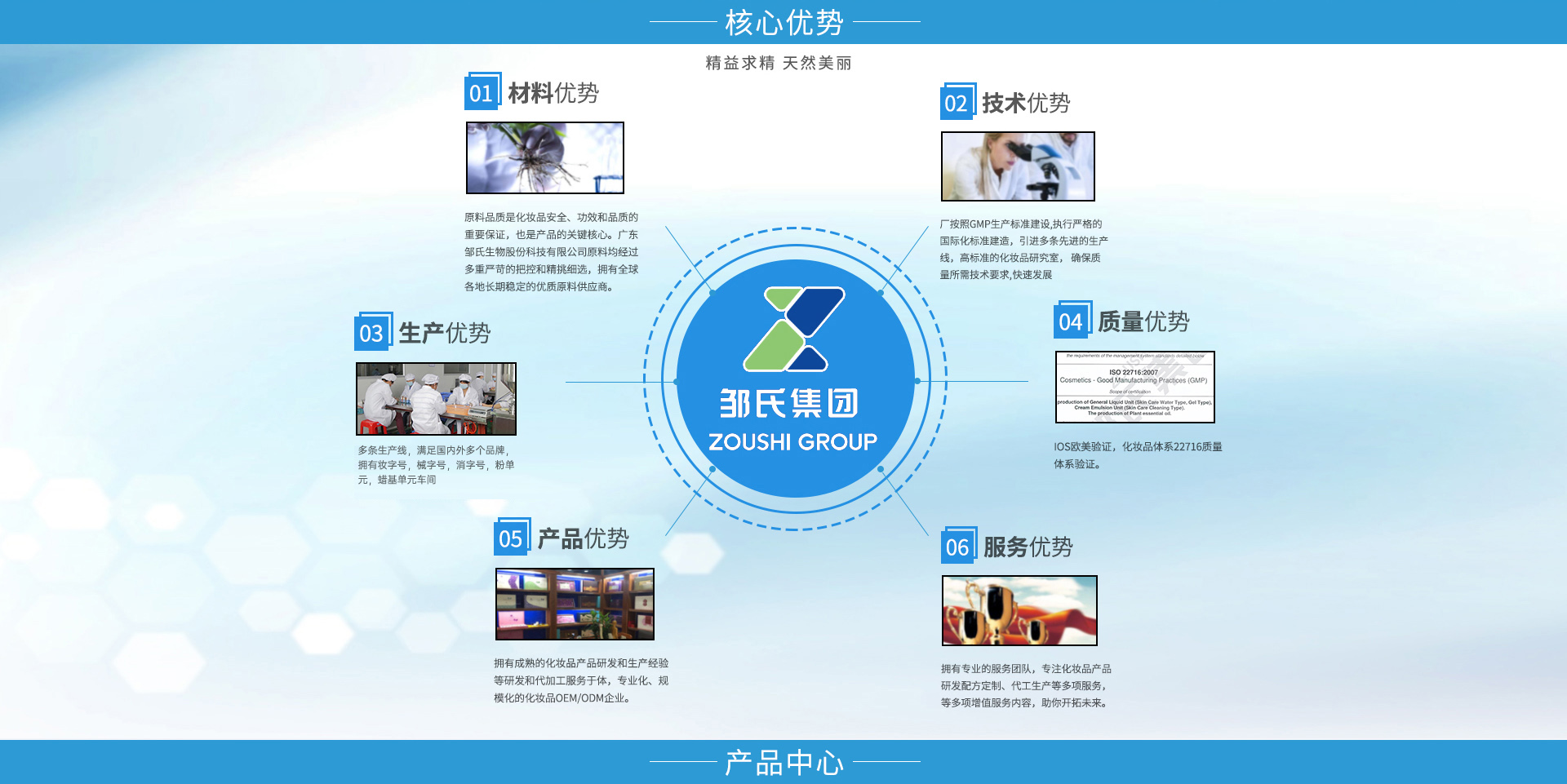 廣東鄒氏生物科技股份有限公司是一家集原料研制、配方開發(fā)、加工生產(chǎn)及配套性服務(wù)為一體的全球化化妝品OEM/ODM服務(wù)企業(yè)。鄒氏生物秉承“精益求精,天然美麗”的經(jīng)營理念,始終孜孜不倦的在美業(yè)領(lǐng)域深耕,經(jīng)過不斷發(fā)展完善與技術(shù)提升,在行業(yè)內(nèi)頗具口碑和影響力。公司擁有雄厚的資金實(shí)力、先進(jìn)的生產(chǎn)設(shè)備以及大批高精專的人才儲(chǔ)備,旨在打造一個(gè)純自主研發(fā),純自主生產(chǎn)以及管理的高科技日用美妝OEM/ODM品牌。 在延續(xù)高質(zhì)量產(chǎn)品和服務(wù)的同時(shí),鄒氏生物始終秉承著純粹的生產(chǎn)理念,在研發(fā)、生產(chǎn)、品控、營銷等多方面升級(jí),配備雄厚的科研力量,引進(jìn)先進(jìn)生產(chǎn)設(shè)備,遵循嚴(yán)苛的品質(zhì)管理標(biāo)準(zhǔn),提供專業(yè)的全方位營銷服務(wù),最大程度地實(shí)現(xiàn)資源整合,致力于成為世界優(yōu)秀化妝品工廠。為廣大品牌商以及消費(fèi)市場(chǎng)輸送品質(zhì)優(yōu)越、高效安全的日用化工、美容美妝、肌膚護(hù)理產(chǎn)品。